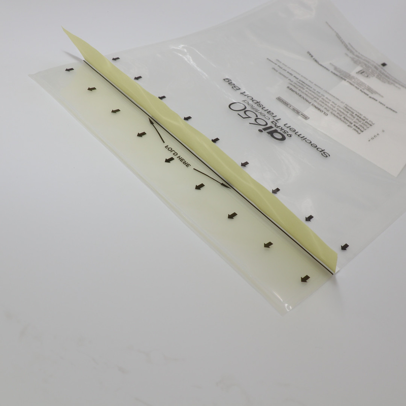 Promoção por atacado Impressão de rotogravura Patologia Uso de laboratório ecológico Reforço lateral Reforço lateral de amostra de plástico transparente Sacos de risco biológico
