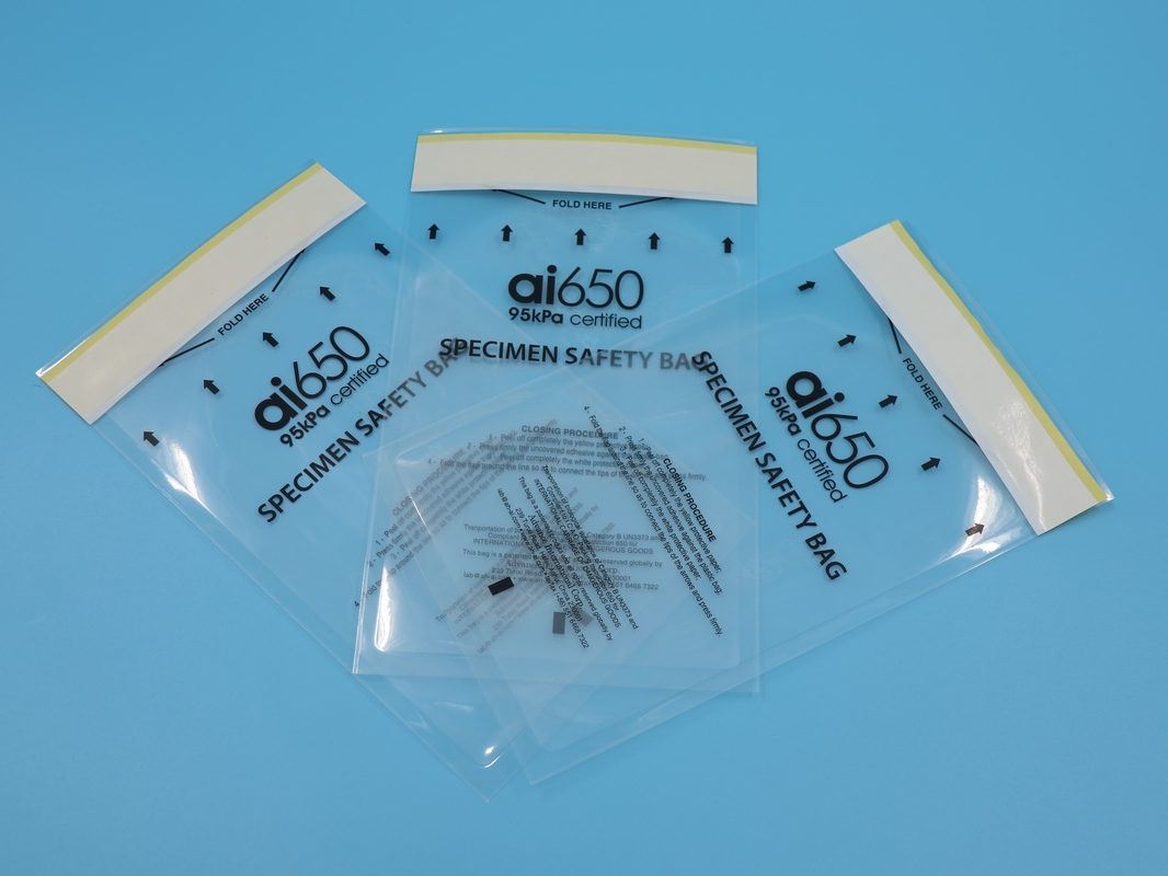 AI 650 95kpa Custom Zip Lock Biodegradável Transportes Médicos Saco de Especimens de Risco Biológico