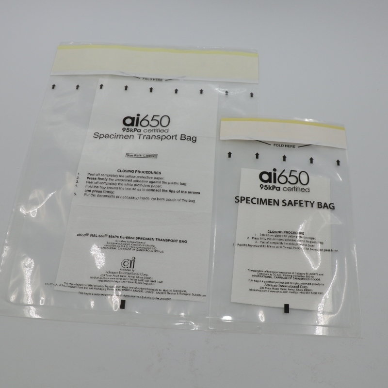 Nome do Produto AI 650 95kpa Bolsa para Espécimes Médicos Biodegradável com Zíper Personalizado para Transporte de Risco Biológico