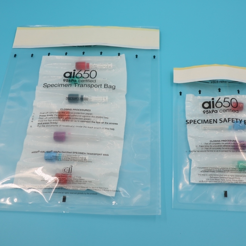 Nome do Produto AI 650 95kpa Bolsa para Espécimes Médicos Biodegradável com Zíper Personalizado para Transporte de Risco Biológico