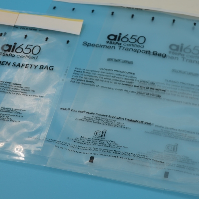 Nome do Produto AI 650 95kpa Bolsa para Espécimes Médicos Biodegradável com Zíper Personalizado para Transporte de Risco Biológico