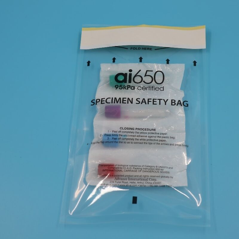 | Nome do Produto | AI 650 95kpa Bolsa para Espécimes Médicos Biodegradável com Zíper Personalizado para Transporte de Risco Biológico |